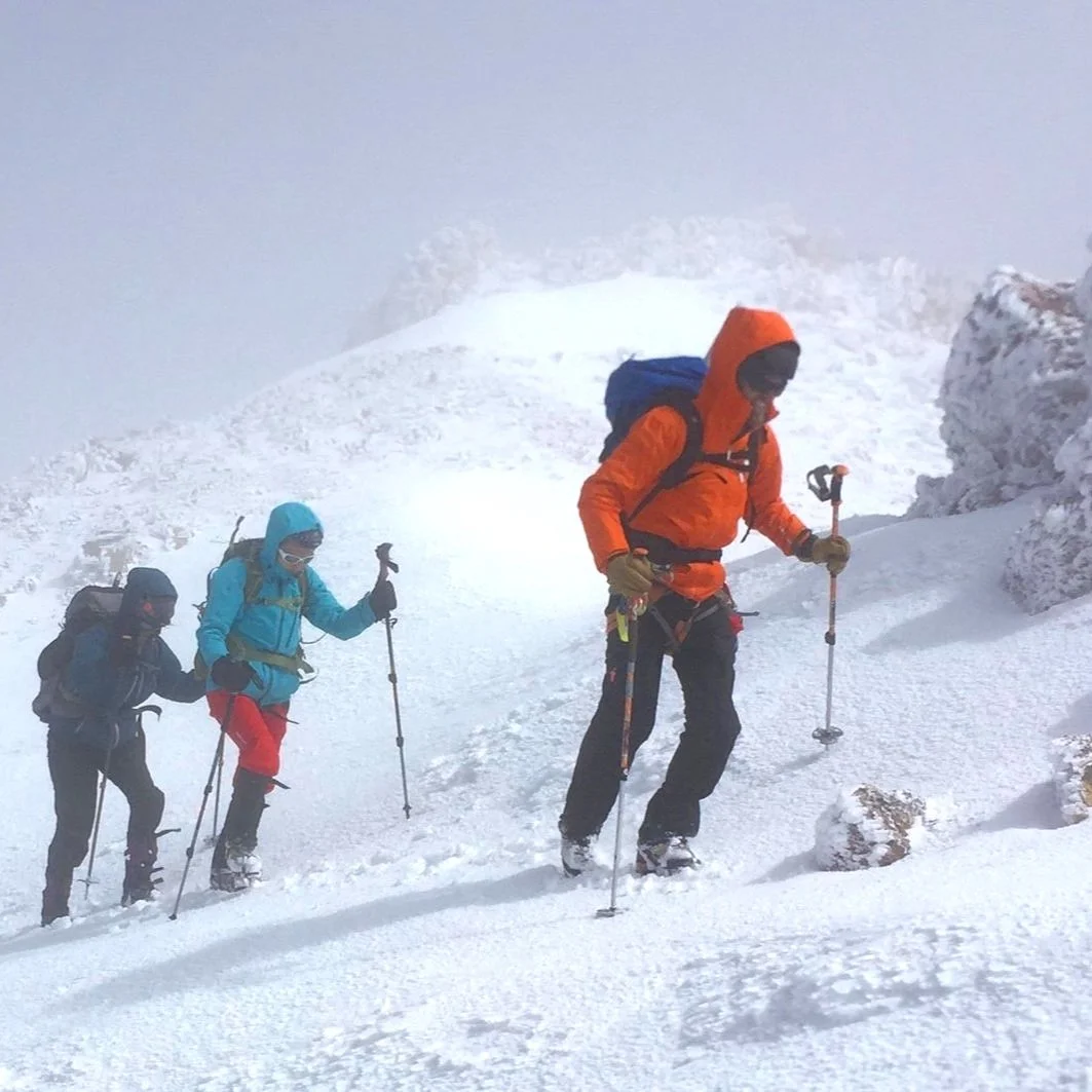 A team of climbers near the summit of Mt Shasta